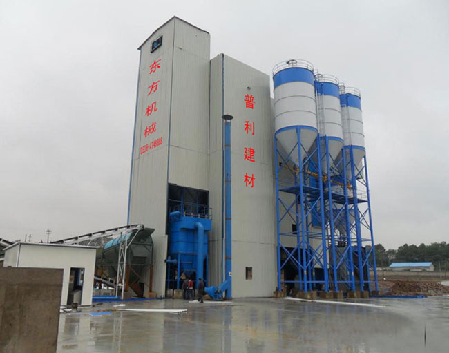 主要由提升輸送系統、計量配料系統、混合系統、儲料系統、包裝系統、除塵系統、控制系統、鋼架平臺等組成。